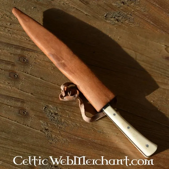 Denne spisekniv er baseret på originaler afbildet fra det 15. og 16. århundrede flamske og hollandske kunstværker. Kniven har et knoglehåndtag. Knive som denne blev brugt over hele Europa mellem det 15. og 16. århundrede. Denne kniv er lavet af rustfrit stål. Skorpen er lavet af læder.