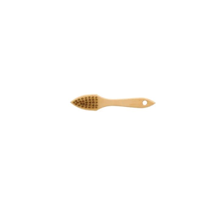 Denne træbørste har stærke messingbørster. Ideel til rengøring af dine gryder og kedler på en middelalderlig festival eller under en LARP- eller genindførelsesbegivenhed. Børsten ser historisk ud, så du ikke bliver fanget ved hjælp af en moderne ting. Enden af børsten har øje. Du kan sætte en streng gennem dette for at hænge den i din lejr.