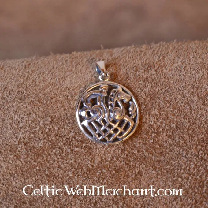 Dette vedhæng forestiller Viking gud Odin på sin otte-benede hest Sleipner. I den nordiske mytologi, Sleipnir er Lokes barn. Børn af Loke var monstre men Sleipnir var den eneste gode monster. Benene ender i en knude motiv. Dette vedhæng er fremstillet af bronze og har en 2,2 cm diameter