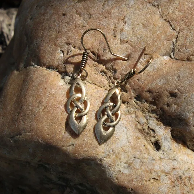 Disse øreringe skildrer en keltisk knude motiv. Motivet har ingen ende, og symboliserer derfor uendelig, uendelig kærlighed eller livet efter døden.