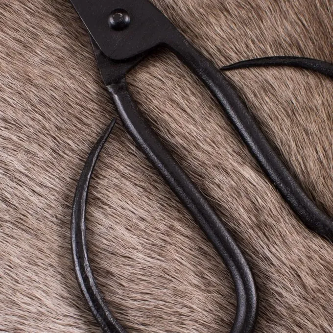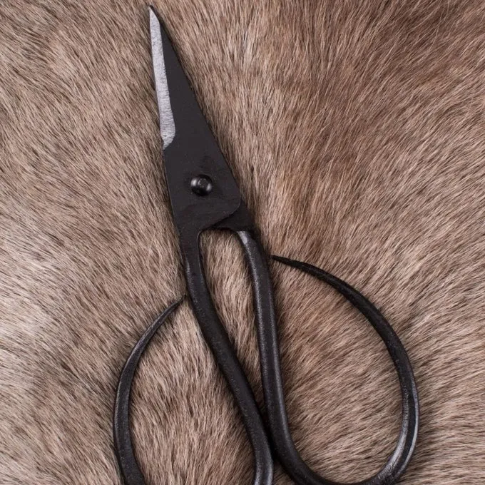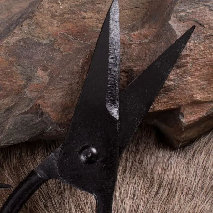 En praktisk saks, der er nem at holde for små og store hænder, perfekt til at skære stof, tråd og andre materialer. Disse sakse er baseret på flere originaler. Saks har været brugt siden det femtende århundrede f.Kr., og det er en af de ældste redskaber for menneskeheden. Selv modeller ligner moderne frisør saks blev allerede brugt i Mesopotamien! Denne model af saks har været stort set uændret siden det trettende århundrede. Disse sakse er hånd-smedet stål. De er fuldt funktionel og et godt værktøj, hvis du er til historiske håndværk og syning, og for re-enactors viser deres håndværk for publikum.