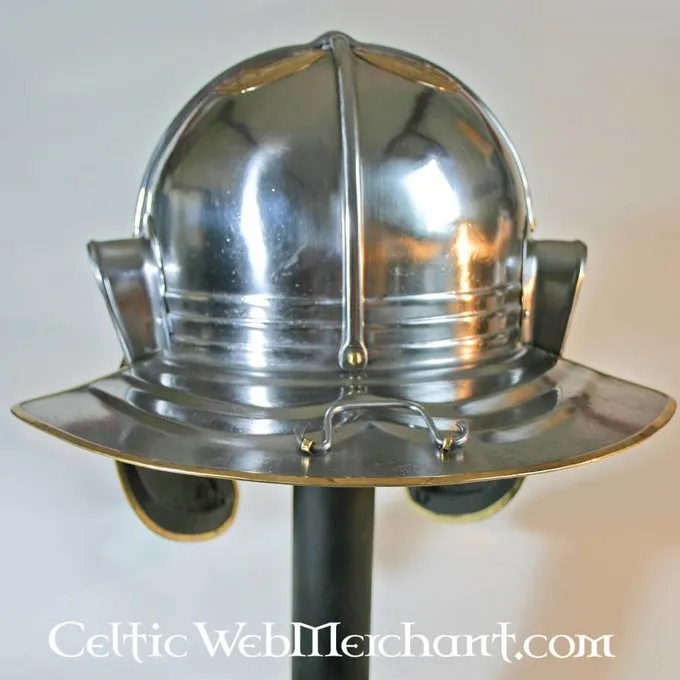 reproduktion er lavet af stål og er prydet med dekorerede messing. Den er velegnet til en Hovedets omkreds op til 60 cm og leveres herunder en bomuld polstret hætte.