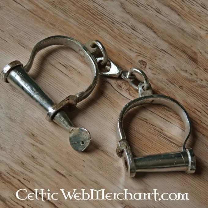 meget massivt stål håndjern. Disse traditionelle håndjern leveres inklusive en nøgle. De er ca.. 27 cm lang og vejer 0,6 kg. En historisk replika af originaler fra det 16.-19 århundrede.