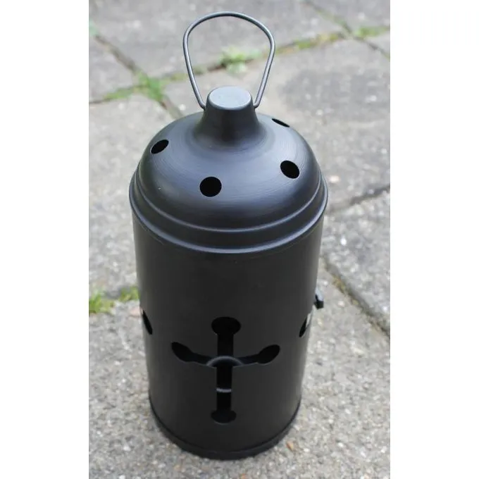 Denne lanterne er fremstillet af 0,7 mm tyk patineret stål og har krydsformede åbninger, der kan åbnes for at placere et lys i lygten.