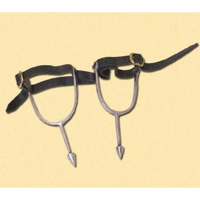 Stropperne kan fastgøres med en messing spænde. Spurs som disse var slidt indtil det 14. århundrede.