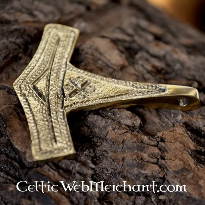 Denne Thor`s hammer er en kopi af en original findes i Rømersdal. Hammeren er symbolet på Thor, gud for torden. Han blev set som den højeste gud vikingerne ved hovedsageligt landmænd og krigere. Ifølge den nordiske mytologi Thor`s hammer blev smedet af dværgen Brokk og når det blev kastet det aldrig gået glip sit mål.
