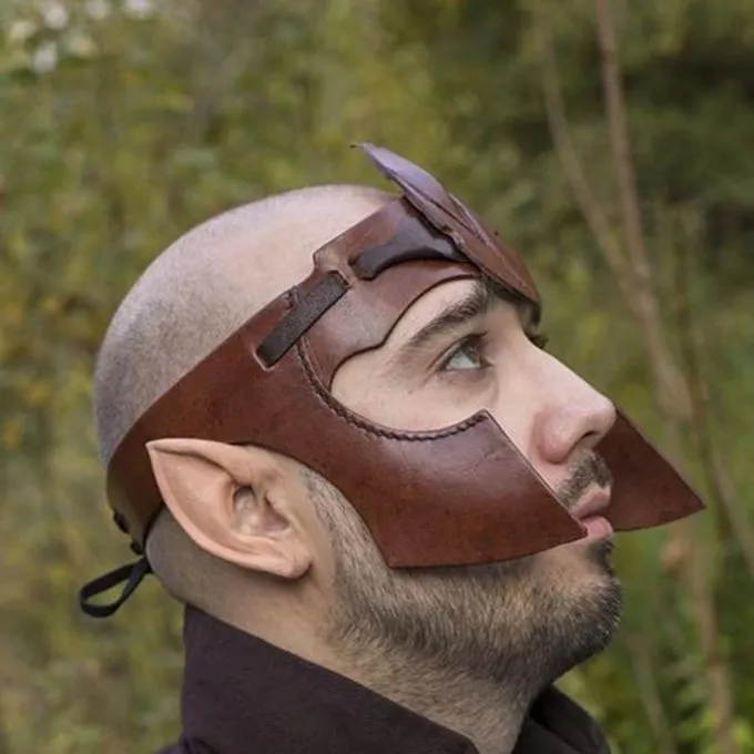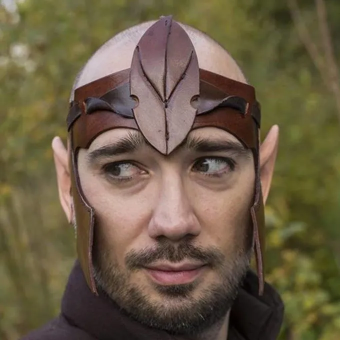 Dette pandebånd er en væsentlig del af den Elven kostume. I midten er det dekoreret med et stort blad at understrege det naturlige bundne ånd alf. For en bedre pasform og bedre beskyttelse, har dette hoved band foring på kinderne.