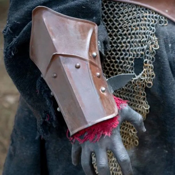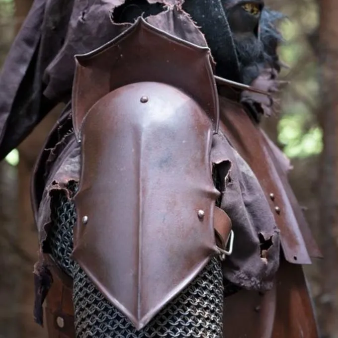 Materiale: blødt stål / / Levering inkluderer: chestplate med læder ryg, skulder rustning, armbeskyttere i plade og fedtegrever / / Stål tykkelse: 1 mm / / Finish: brunpatineret / / Størrelse: M & L /