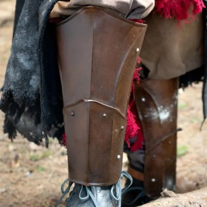 Levering inkluderer: chestplate med læder ryg, skulder rustning, armbeskyttere i plade og fedtegrever