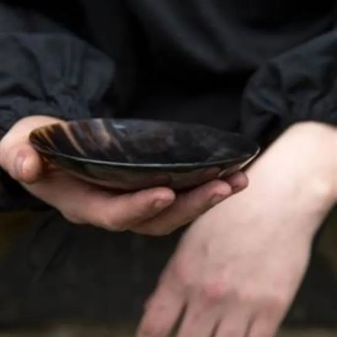 Hornskåle blev brugt i århundreder over hele Europa. Denne skål behandles på indersiden, så den er velegnet til konsum af mad. Hornet er glat poleret og har et laklag. Bemærk: ikke egnet til varme væsker. En perfekt tilføjelse til din genoptagelse og LARP-gear.
