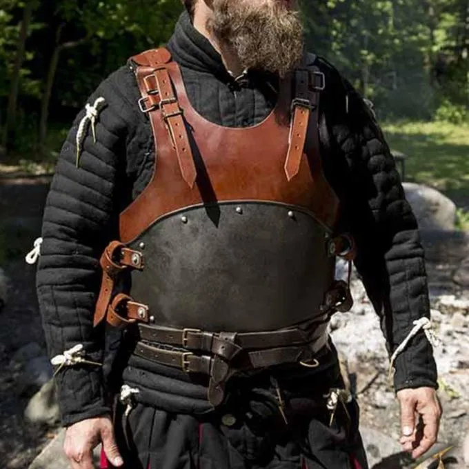 En smuk kyrads til LARP, Cosplay & Medieval kostumer. Rogue serien består af individuelle rustning dele. Du kan samle en komplet rustning selv ved at købe de forskellige dele i Rogue serien. Du kan også bære delene hver for sig over dit tøj, eller kombinere dem med andre rustning dele fra Epic Armory til din egen smag og tilpasse din larp eller Cosplay karakter. Mulighederne er uendelige! Denne smukke kyrads er lavet af høj kvalitet vegetabilsk garvet brunt læder og sorte stål. Jern- kyrads beskytter maven, ribben og side. Læderet beskytter bryst og ryg. Du kan fastgøre kyrads med stropper på ryg og skuldre. Den rustning har ringe, så du kan vedhæfte andre rustning dele til det.