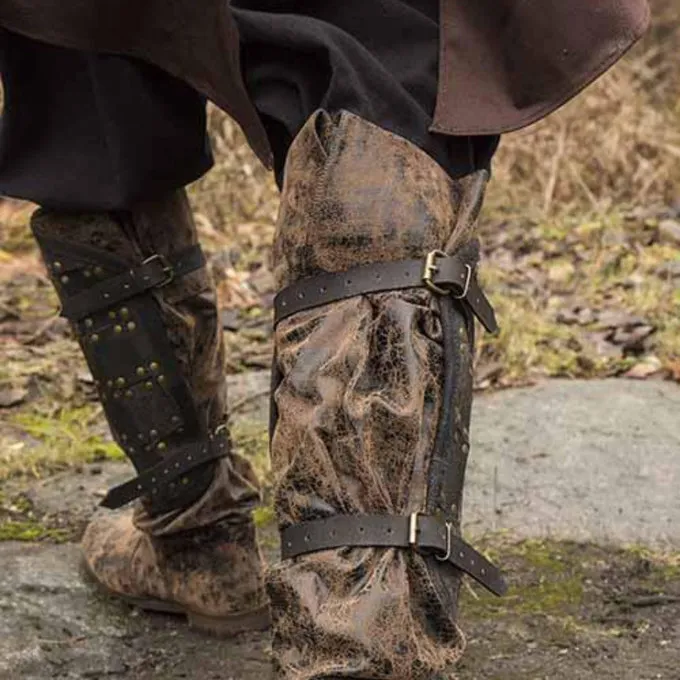 Disse smukke læder grever består af kvadratiske rum i læder, der er forbundet til hinanden med messing søm og giver ekstra beskyttelse til den nedre ben. Læder rustning i denne stil blev brugt i middelalderen og blev hovedsagelig bæres under den sene middelalder ved fodfolk. De kan også bruges til LARP og reenactment af den tidlige middelalder. Du kan fastgøre fedtegrever sikkert til dine underben med læder snørebånd og remme. Disse grever leveres per par.