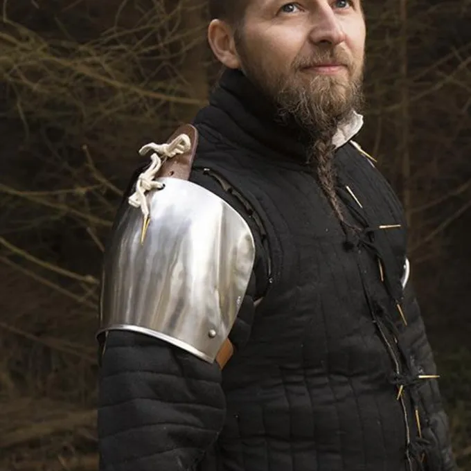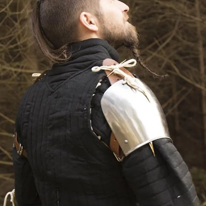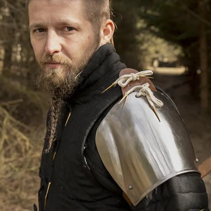 Disse pauldrons foretages efter originaler fra Churburg samling i Sydtyrol. Disse stykker blev foretaget af de bedste smede fra Milano og Innsbruck. Disse skulderstykker kan kombineres med næsten alle plade rustning og gambesons og er særligt egnede til det fjortende århundrede. Den rustning har en skrå bund ved fronten, at aflede slag på armen. Du kan fastgøre rustning til din overarm med en læderrem. Toppen har en læderrem med huller, med de medfølgende snørebånd du kan fastgøre dem til gambesons og plade rustning. </ P> Denne rustning er 1 mm tyk og egnet til Larp slag, Cosplay og teater.