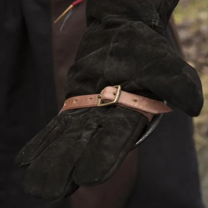 Du fastgør din rustning eller ringbrynje ved at fastgøre læderbånd til din slagkofte og binde disse fast på din rustning/ringbrynje. På den måde sikrer du, at rustningen forbliver på plads under kampen.