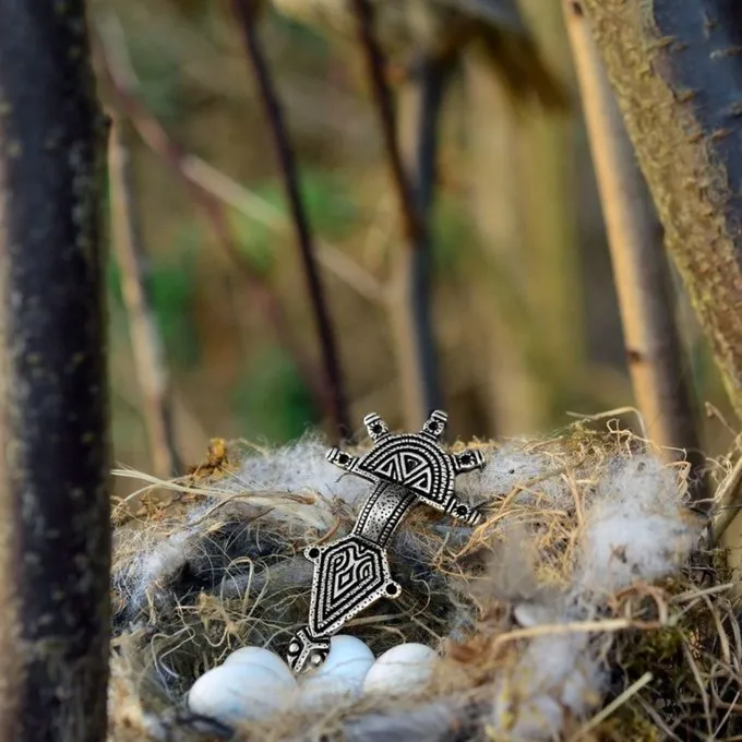 Denne germanske fibula er en kopi af et 10-syvende århundrede udgravet i Kent, England. Fibulae som dette blev båret af de germanske stammer over hele Europa, men var særligt populære omkring Rhine-området. Originalen er nu en del af samlingen af Ashmolean Museum i Oxford. Fibulae som disse blev slidt parvis af germanske folk som Merovingian og Anglo-Saxon Women.