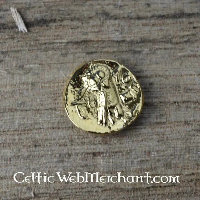 Denne mønt er lavet af forsølvet tin. Den har en diameter på ca.. 2 cm