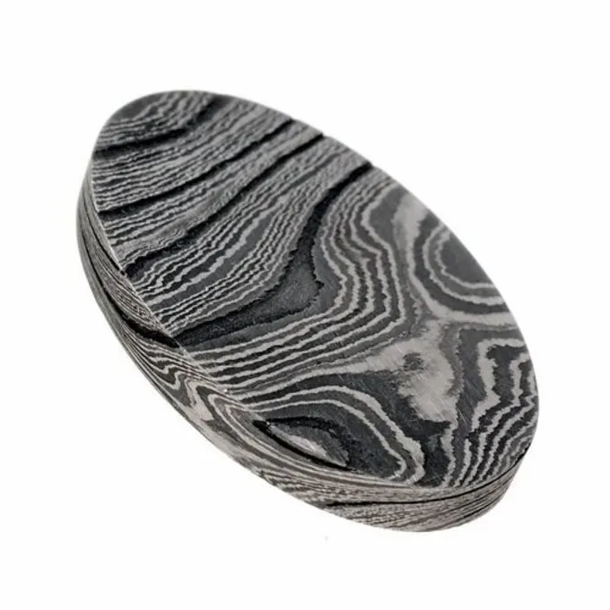 Dette Damaskus stål skive er perfekt til at gøre knive selv. Denne disk til håndtaget er fremstillet af forskellige lag af kulstofstål. Dette giver din kniv en solid og dekorativ finish. Den oprindelige metode til fremstilling af Damaskus stål fra Wootz stål blev tabt i den moderne æra. I dag er navnet Damaskus stål, der anvendes som et generisk udtryk for mønster svejset / laminerede eller smeltet stål lavet af to eller flere forskellige ståltyper.