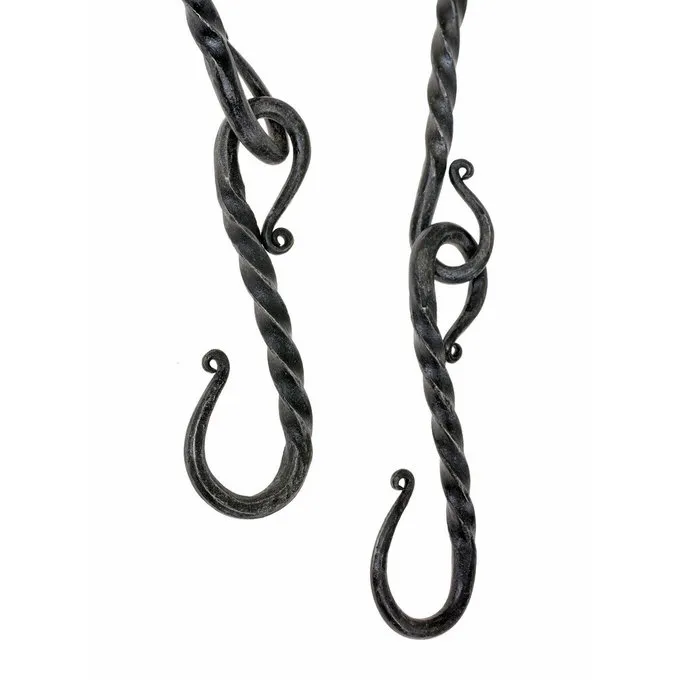 Denne kæde er udstyret med flere kroge, så flere kedler kan hænges på den. Denne type er en barkæde, en teknik, der er blevet brugt siden oldtiden. Denne kedelkrog er ideel til historiske lejrner fra klassisk antikviteter til det 19. århundrede.