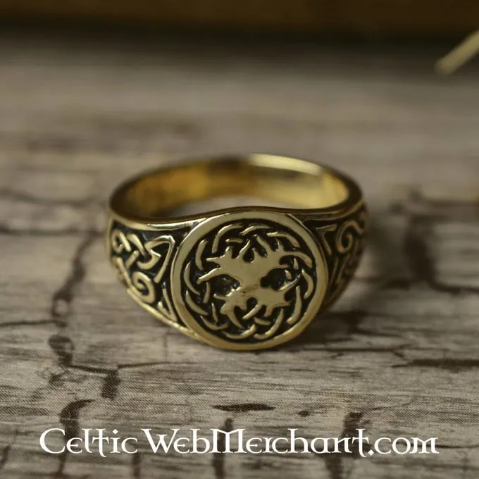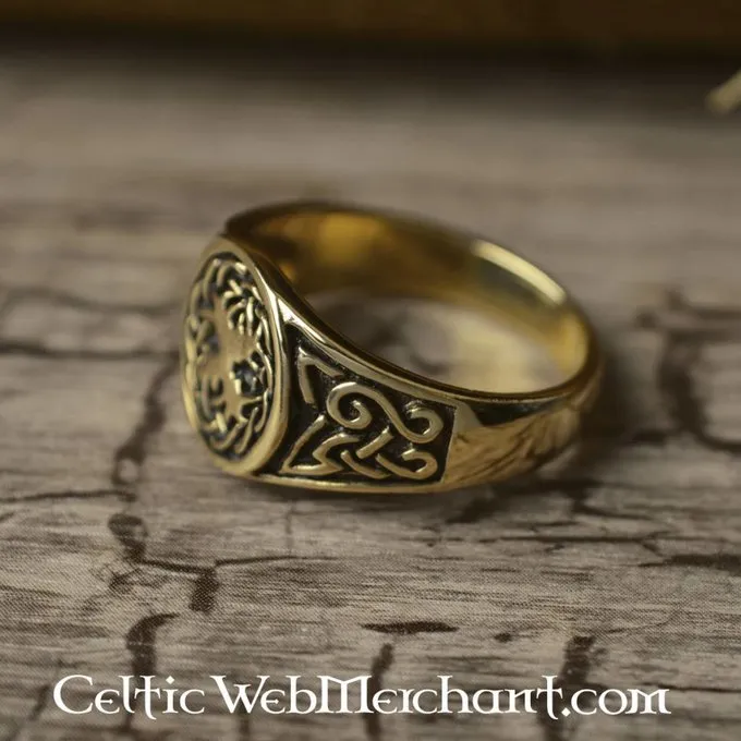Denne ring viser en skildring af et liv træ, Yggdrasil. Det er helt håndgjort af bronze og omgivet med Keltisk knude motiver. Måling din ring Størrelse: sætte en velsiddende ring på en lineal eller et bånd-foranstaltning. Mængden af mm inde i ringen er den korrekte størrelse.