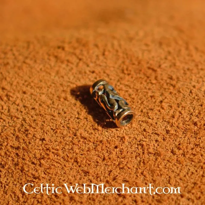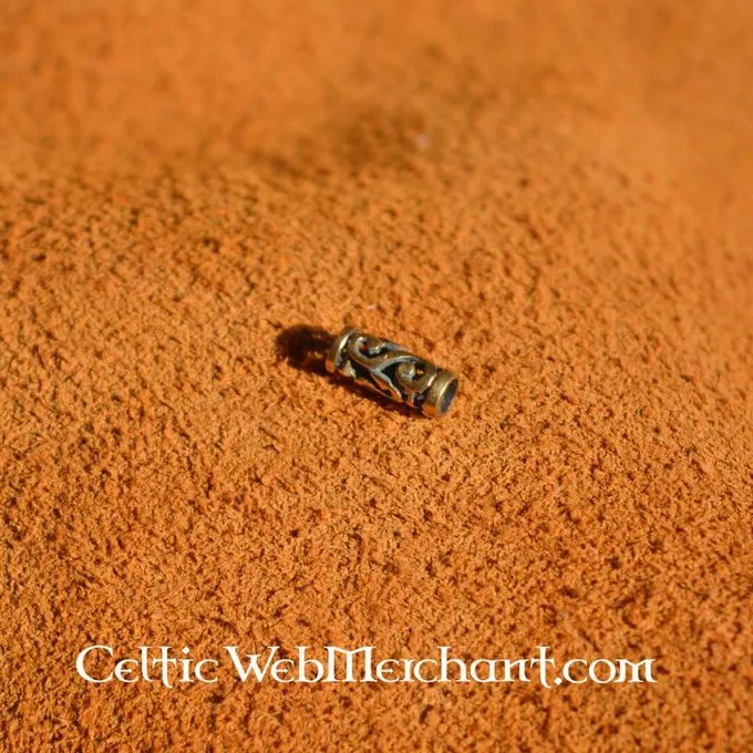 Denne skæg perle kan bruges til skæg, hår, armbånd og necksnører. Den er fremstillet af bronze med en indvendig diameter på 0,2 cm. Den måler ca. 9 x 4 mm og vejer 3 gram