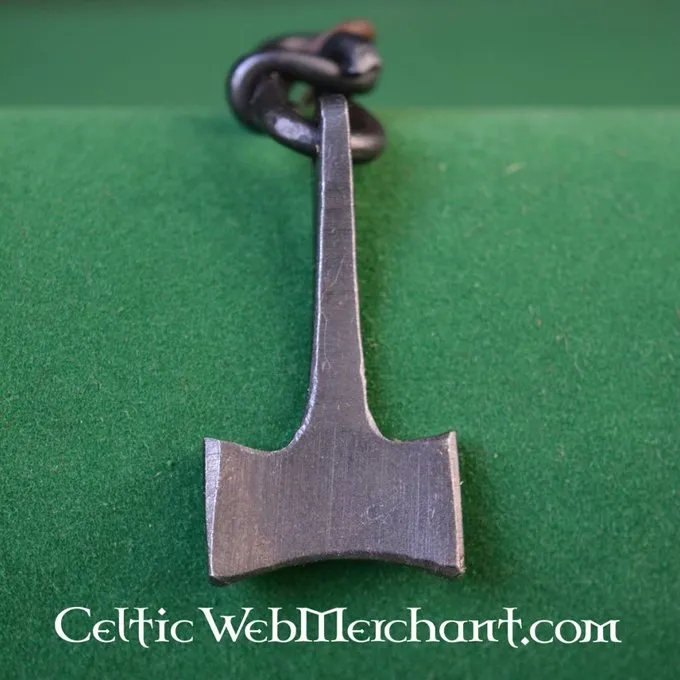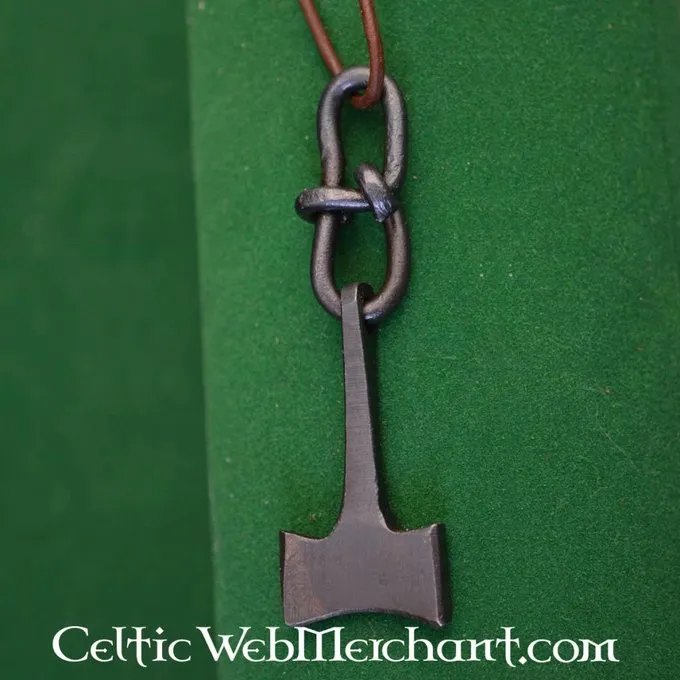 Hammeren er symbolet for Thor, gud for torden. Han blev set som den højeste gud vikingerne ved hovedsageligt bønder og krigere. Ifølge mytologien Torshammer blev smedet af dværgen Brokk og når det blev kastet det aldrig gået glip sit mål. Dette Torshammer er hånd-smedet af tre dele.