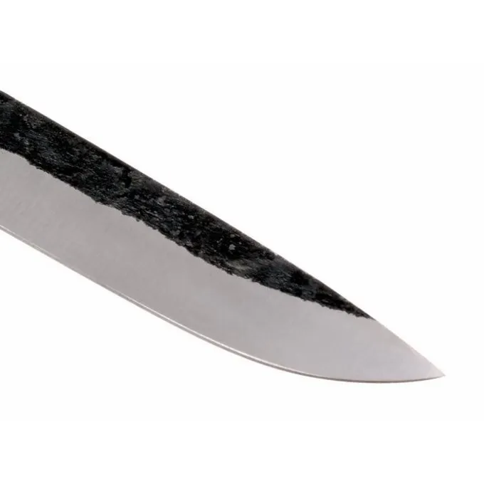 Knivblade som denne blev brugt over hele Europa fra det 5. til det 12. århundrede. Den er fremstillet af 1085 kulstofstål og hærdet til en hårdhed på 54 til 56 HRC.