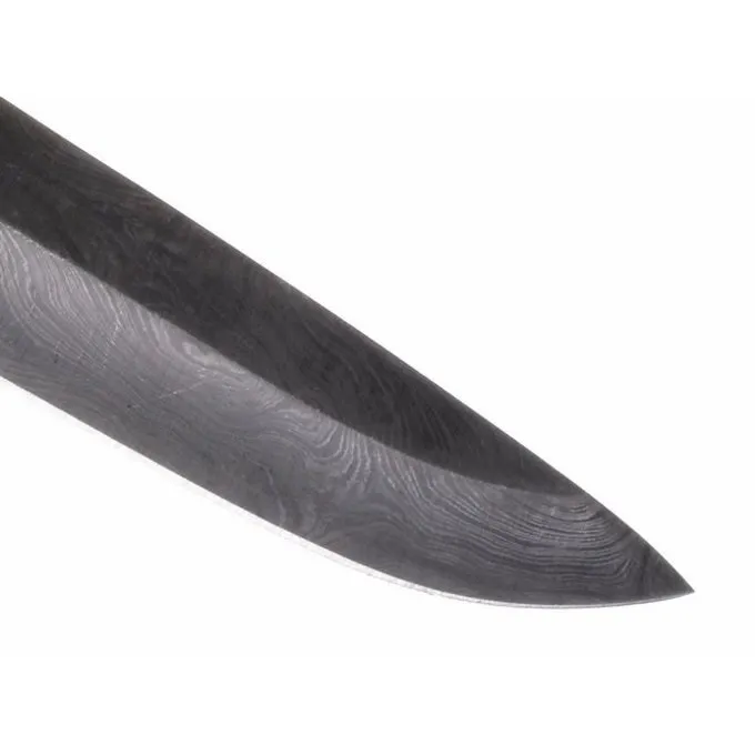 Materiale: damaststeel / 256 lag AISI 4340 og 15N20 stål / / Hårdhed: 56-58 HRC / / Længde 22 cm / / Bladelængde: 12 cm / / Bladlængde: 12 cm / / Bladetykkelse bagpå: 4 mm / / Tang: 10 cm /