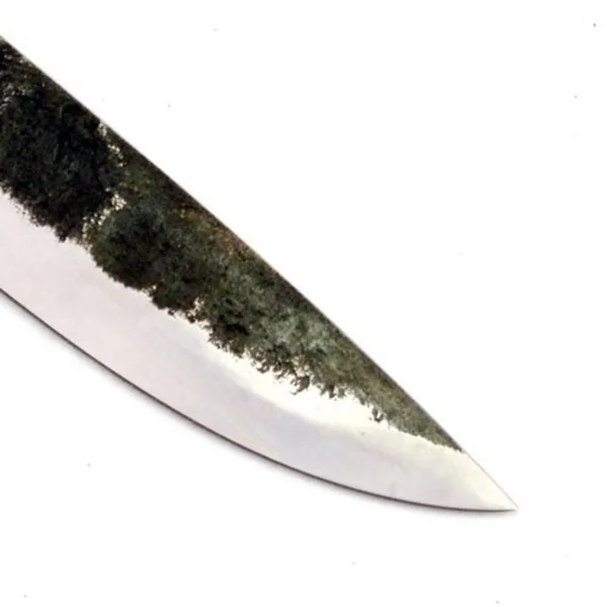 Denne hånd-smedet kniv klinge er en kopi af adskillige tidlige middelalder originaler. Knivblade som denne blev brugt i hele Europa mellem den 8. og 11. århundrede. Den er fremstillet af 1085 kulstofstål og hærdet til en hårdhed på 54-56 HRC.