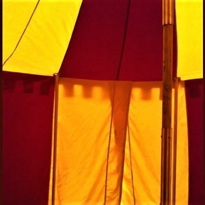 telt er 4,4 meter høje i midten, har sidevægge 2,2 meter og har en diameter på ca.. 6 meter. Teltet leveres inkl barduner, fyr linje strammere og pløkker. Denne pakke indeholder ingen teltpløkker, kan disse bestilles separat .