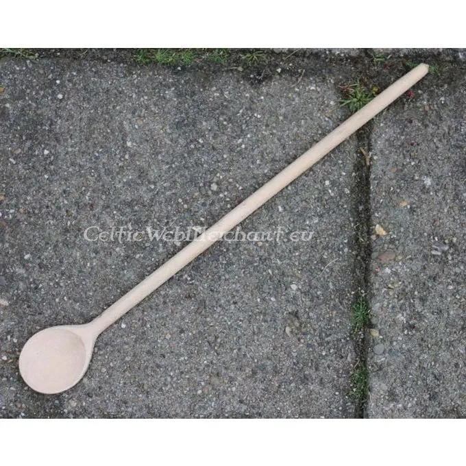 Denne madlavning skeen er lavet af birketræ og dens længde er 100 cm.