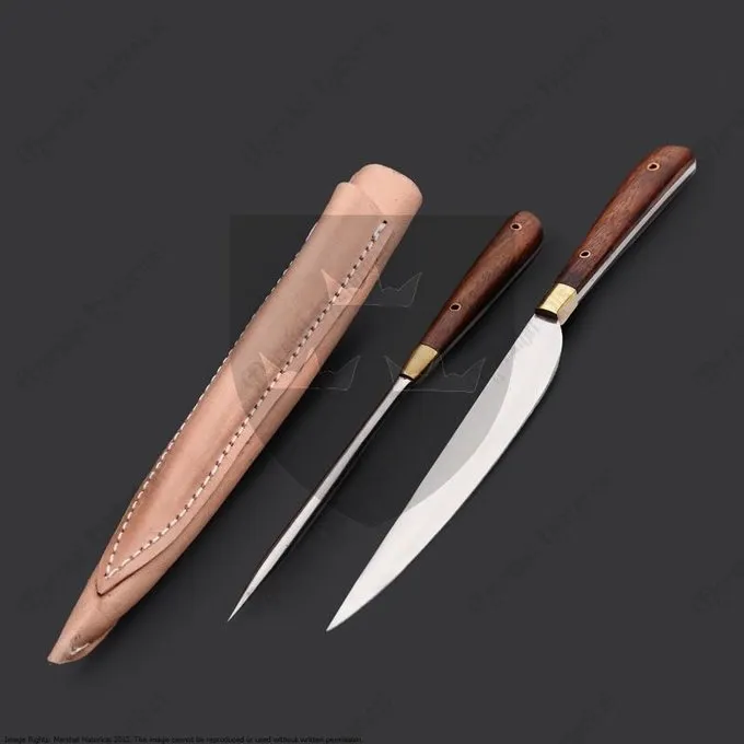 Dette bestik sæt er lavet af autentisk materiale og leveres, herunder læder scabbard. Den består af en spisekniv og spise valg.