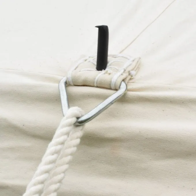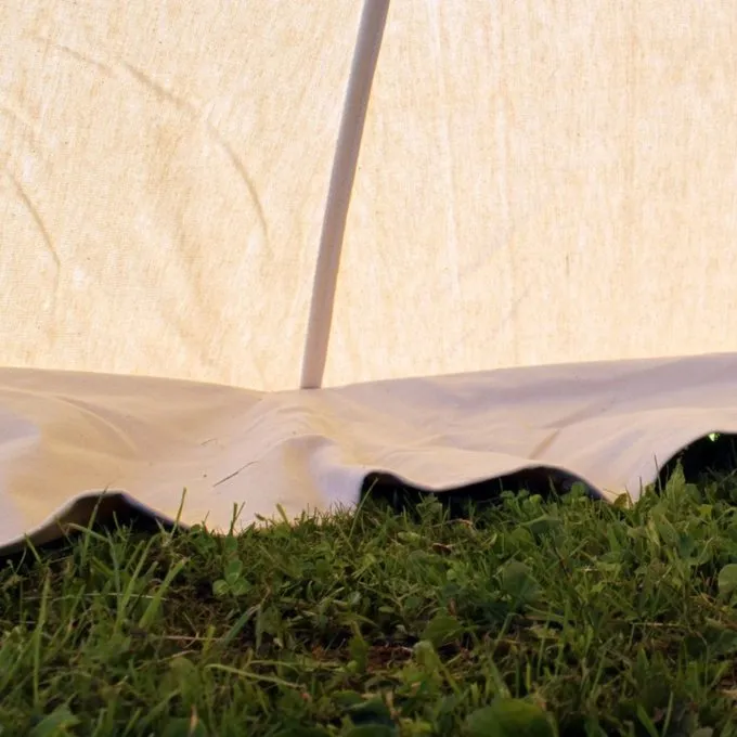 Materiale: 100% lærred 425 gsm / / Længde: ca. 3 meter højeste punkt / / Højde på side: 1,9 meter / / Størrelse: 4 x 4 meter / / Farve: rød-naturlig / / Baseret på en historisk original