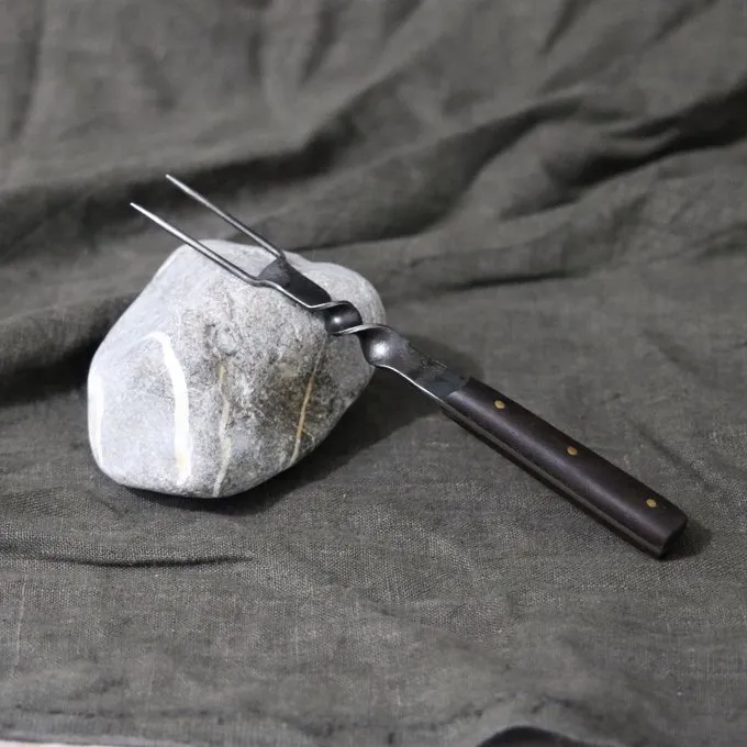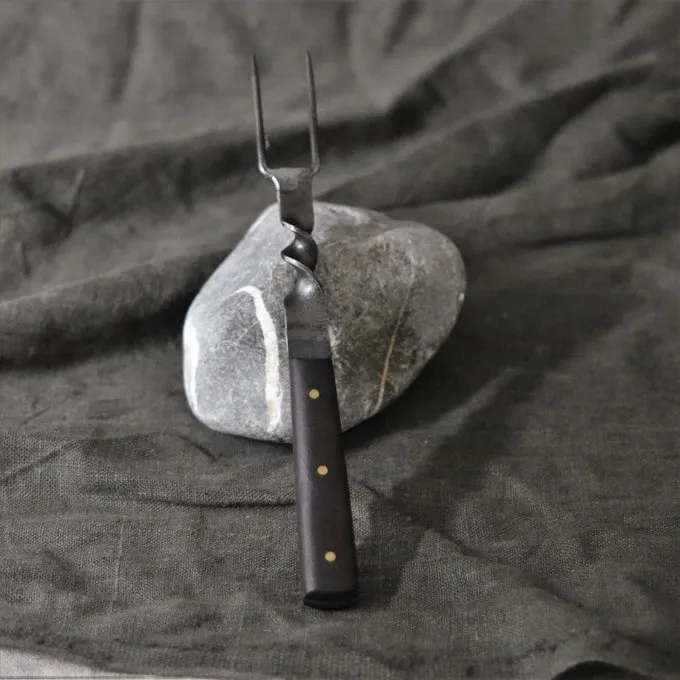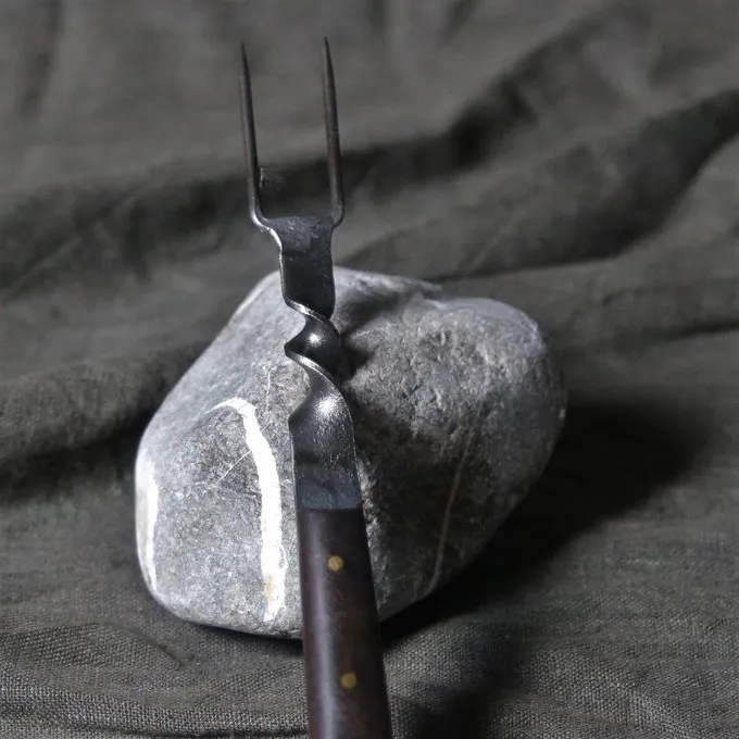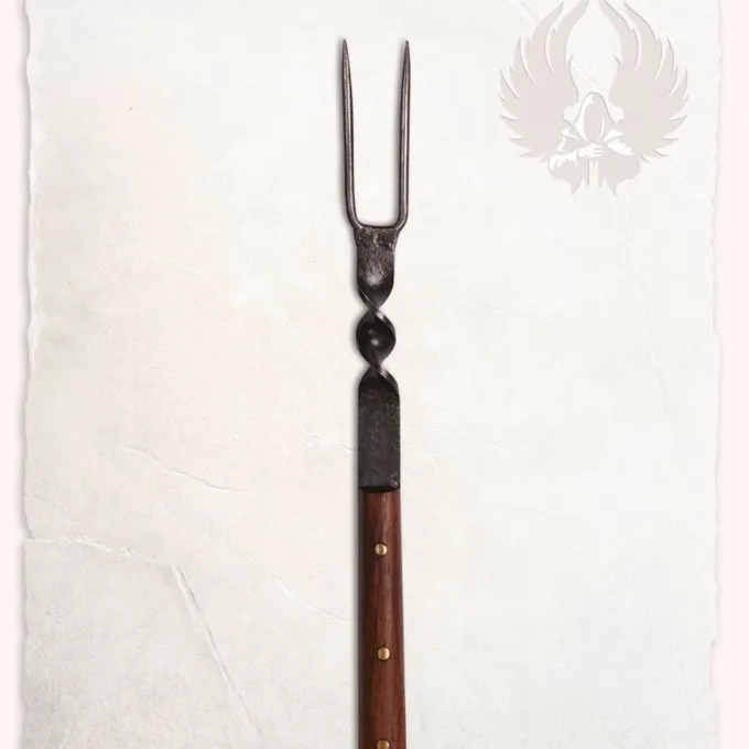 En banket gaffel af Mytholon, til historiske banketter, larp og reenactment. Hvis du spiser med din gruppe under et arrangement, kan du bruge denne gaffel til at skrabe det mad og distribuere det over pladerne. Denne gaffel er perfekt, hvis du ønsker at spise i perioden stil eller for historisk madlavning og banketter. Også fantastisk til museer og film, der ønsker at gøre en historisk udstilling. Gaflen har et patineret finish og ser smukt autentiske.