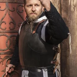 Du fastgør din rustning eller ringbrynje ved at fastgøre læderbånd til din slagkofte og binde disse fast på din rustning/ringbrynje. På den måde sikrer du, at rustningen forbliver på plads under kampen.
