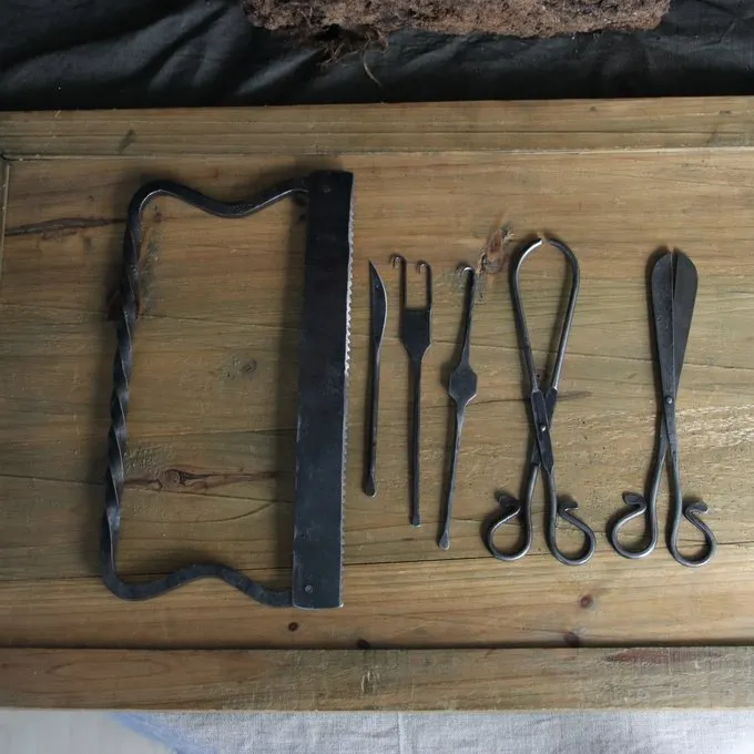 Denne operation sæt er baseret på historiske originaler. Den er ideel til reenactment eller LARP lejr eller til fremstilling middelalderlige udstillinger. Denne seks-stykke kirurgi sæt består af en sav til amputation, en skalpel, saks og forskellige sår klip / kroge. Ikke egnet til faktisk brug, kun beregnet til dekoration.