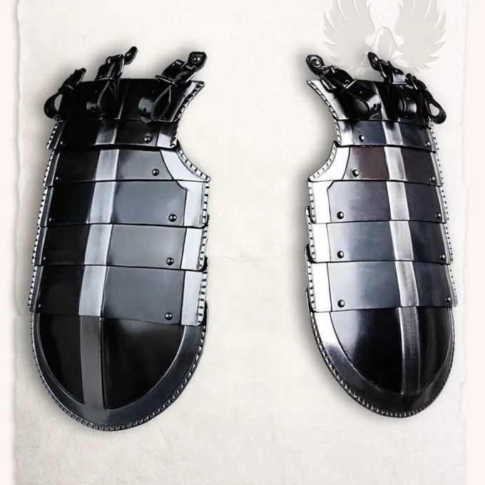 Materiale: kulstofstål / Finish: bronzed / Tykkelse: 1,2 mm / Levering: pauldrons, hjelm, Gorget, bryst panser, ryg rustning, tassets / Baseret på en historisk original