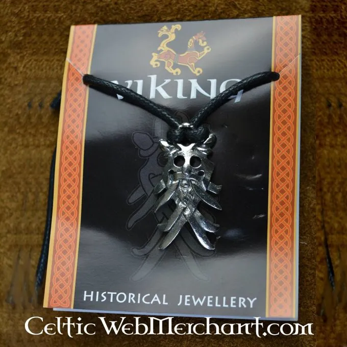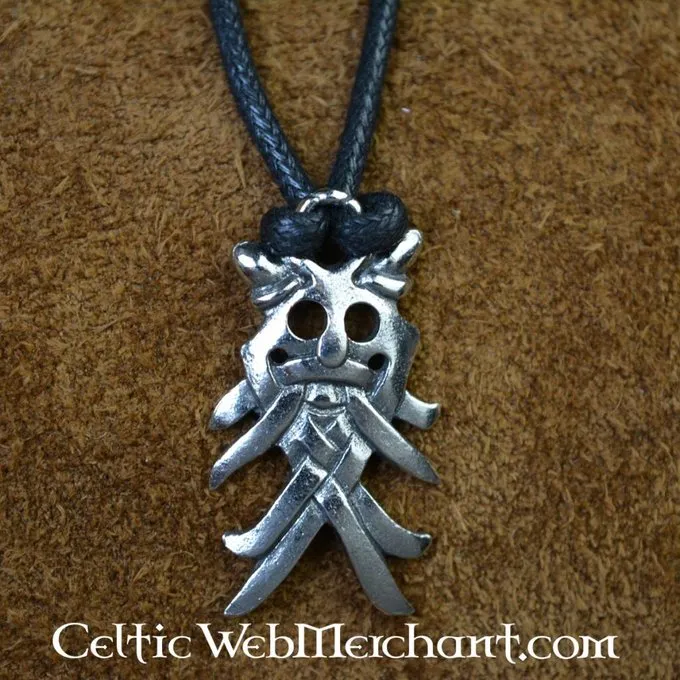 Denne juvel er baseret på en 9. århundrede skildring af Rune sten af Århus i Danmark. Denne maske symboliserer ansigt Viking gud Odin. Han har en lang skæg og vilde udseende. Denne juvel er leveret, herunder en læderrem.