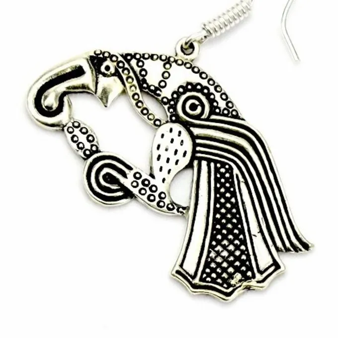 Disse germanske øreringe er baseret på et germansk tegn, der blev brugt i hele Europa mellem den 4. og 11. århundrede. Denne ravn var en af ravnene af Odin eller Wodan. Han symboliserede krig og blev formentlig selv afbildet på flagene.