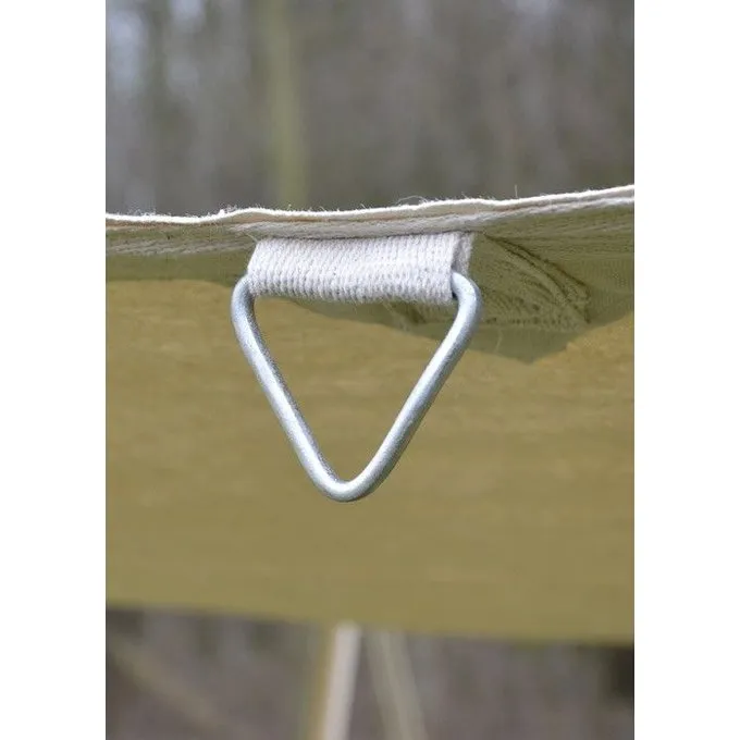 Disse fire-sidede lærred presenninger er perfekt til alle udendørs formål. De kan bruges som beskyttelsesrum fra sol eller regn eller som fortelte til middelalderen lejre, re-enactment og larp begivenheder eller blot dit hjem haven. De er også mere end tilstrækkelige til at forbinde flere middelalderlige telte sammen for at holde sig på den tørre jord, når man går fra den ene telt til den anden eller for at beskytte midt på campingpladsen fra al slags vejr. Ved hjælp af et par wirer kan disse tarps også kalibreres mellem træerne