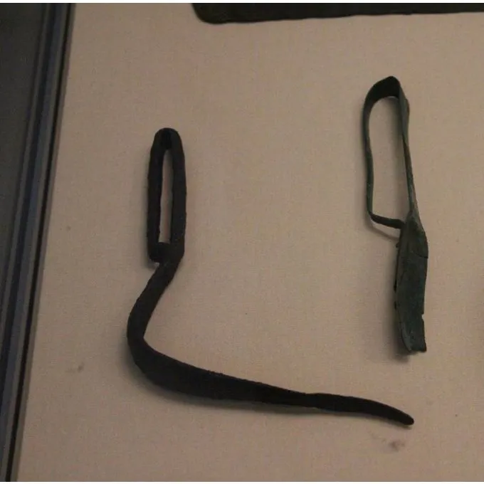 Denne strigilis er lavet af jern og dens længde er 20 cm.