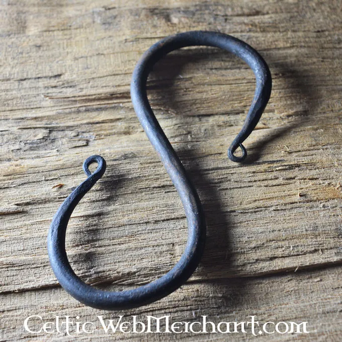 Denne hånd-smedet S-krogen er fremstillet efter flere middelalderlige originaler. S-kroge blev anvendt til at hænge gryden over ilden. Det er et vigtigt redskab til visning eller re-vedtage en historisk køkken.