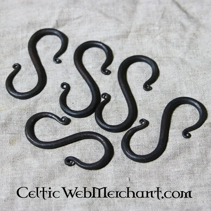 Disse håndgjort, stål S kroge er perfekt egnet til at hænge lamper, krukker eller andre genstande i løbet af middelalderen begivenheder. Ved levering er det muligt, at de er lidt rustent, dette gøres med vilje for at skabe en ekstra autentisk atmosfære.