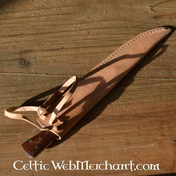 Detaljer / Materiale: 440 Rustfrit Stål, træ / Samlet længde: 23,5 cm / sværdlængde: 14,5 cm / Inklusive læder skede / Baseret på historisk original /