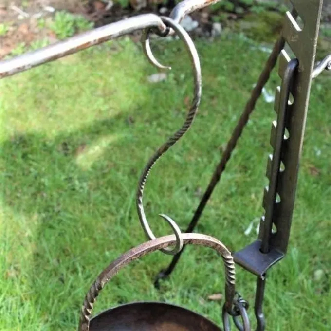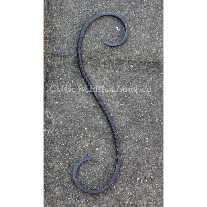 Længden af dette S krog er 14 cm, og det er egnet til at hænge pander og grill. Den er lavet af jern.