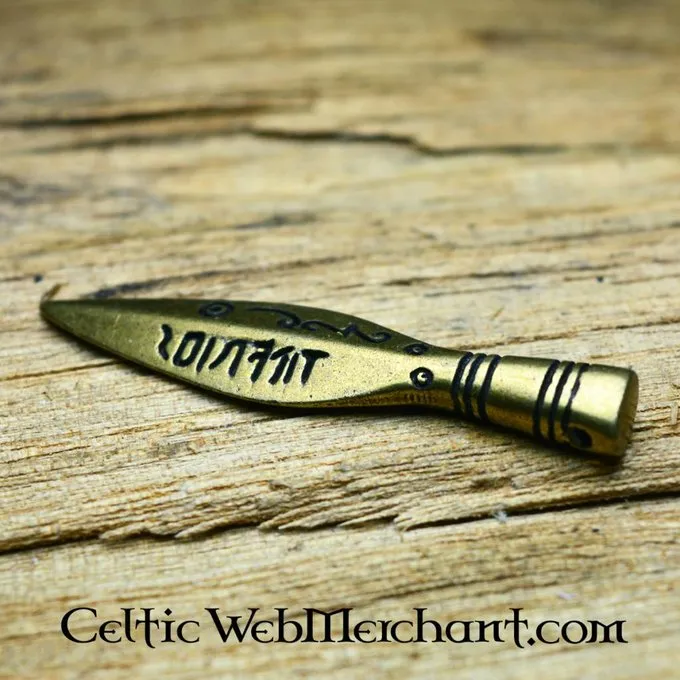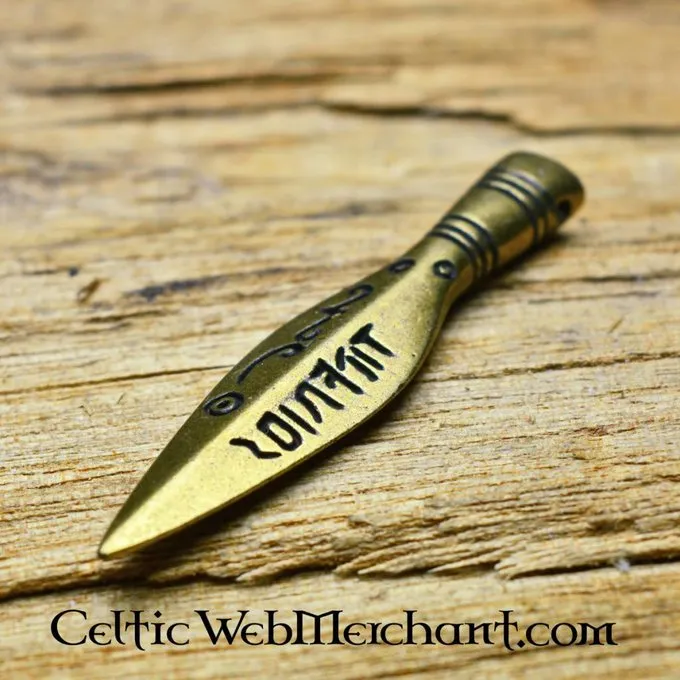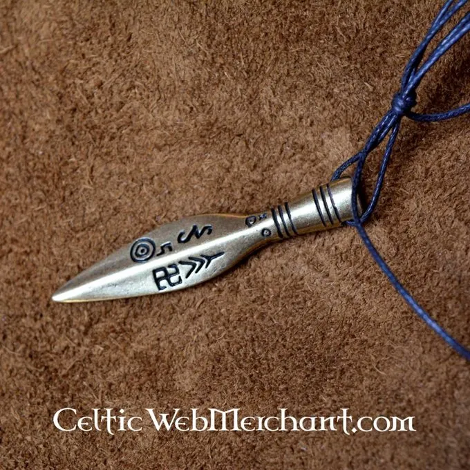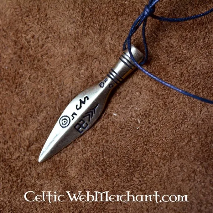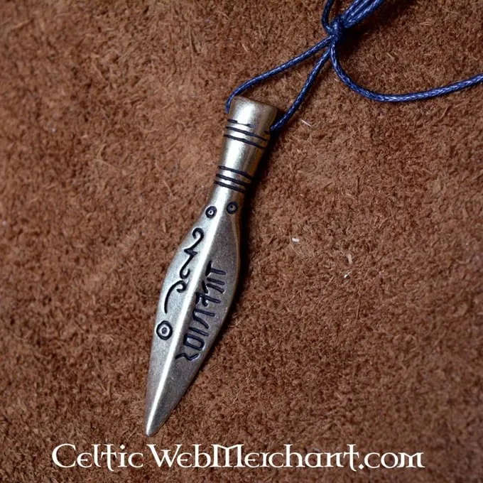 Dette vedhæng er formet som en stylet spydhoved. Den indeholder bl.a. rune inskriptioner.