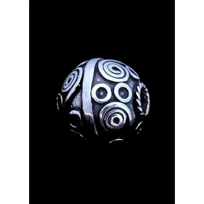En stilfuld keltisk hår eller skæg perle, lavet af sterlingsølv. Dens indvendige diameter er ca.. 0,45 cm. Det kan også blive hængt som en pendant til en fin halskæde eller lædersnor. Vulsten har en diameter på ca.. 1,6 cm og vejer 6,4 gram