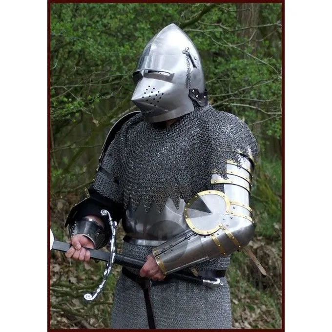 Dette er en kopi af armen seletøj fra Churburg rustning fra slutningen af det 14. århundrede. Sættet består af arm seler, albue politi og armskinner for begge arme. Delene kan fastgøres med tre stropper på indersiden.