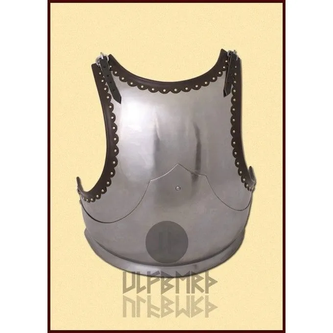 Denne brystplade er fremstillet af 1,6 mm tykt stål. Den er forsynet med læderremme til at fastgøre den til ryggen. Denne brystplade er egnet til en brystmål op til 130 cm. Den vejer 2,8 kg