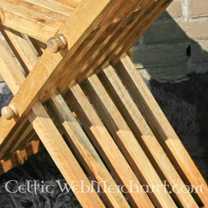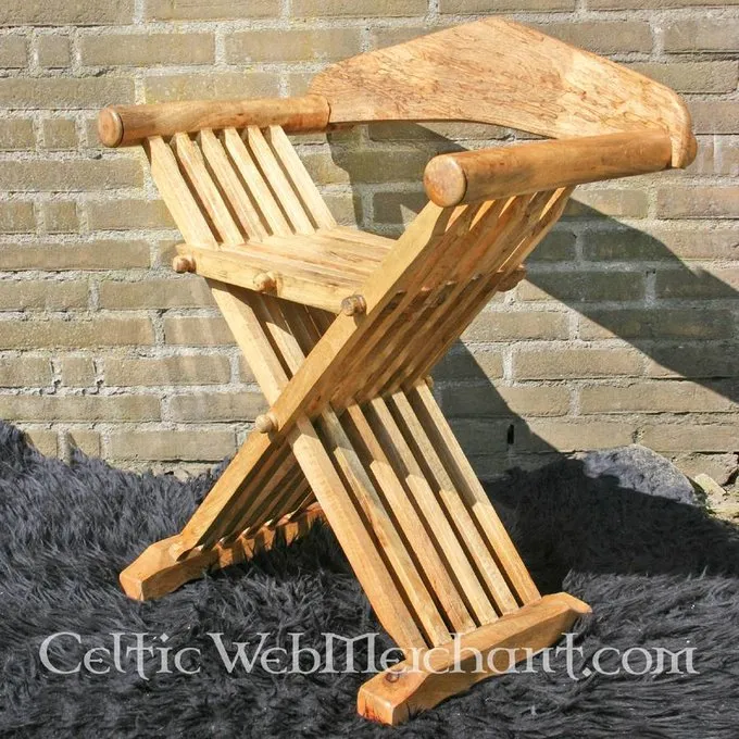 Dette træ middelalderlige stol er baseret på forskellige sene 10. – 15. århundrede stykker. Disse stole var meget praktisk for kampagner, som de kunne være let foldes. Stolen er 70 cm høj og har et sæde på 51 cm. Det vejer ca.. 9 kg.